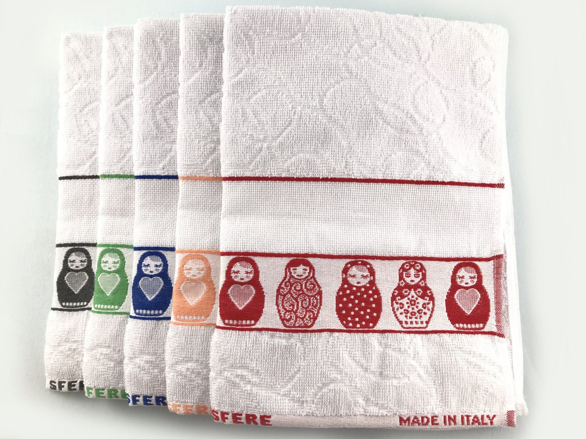 Asciugamani da ricamo con ospite prodotto in Italia e disponibile in rosa, azzurro, panna, rosso, bianco, verde, tortora, giallo, lilla e grigio. Disponibile anche con Ovale.
